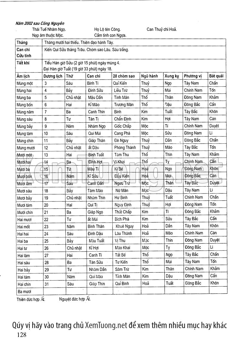 • Xem Ngày Tốt Xấu Vạn Sự: Cung cấp thông tin chính xác về ngày Hoàng đạo, Hắc đạo, giờ tốt xấu (theo các phương pháp cổ truyền như Tam Tông Miếu, Khổng Minh Lục Diệu...) để bạn lựa chọn được thời điểm lý tưởng cho mọi công việc quan trọng.