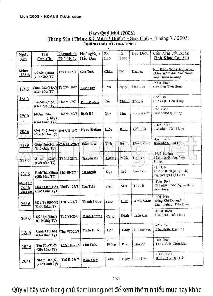 • Xem Ngày Tốt Xấu Vạn Sự: Cung cấp thông tin chính xác về ngày Hoàng đạo, Hắc đạo, giờ tốt xấu (theo các phương pháp cổ truyền như Tam Tông Miếu, Khổng Minh Lục Diệu...) để bạn lựa chọn được thời điểm lý tưởng cho mọi công việc quan trọng.