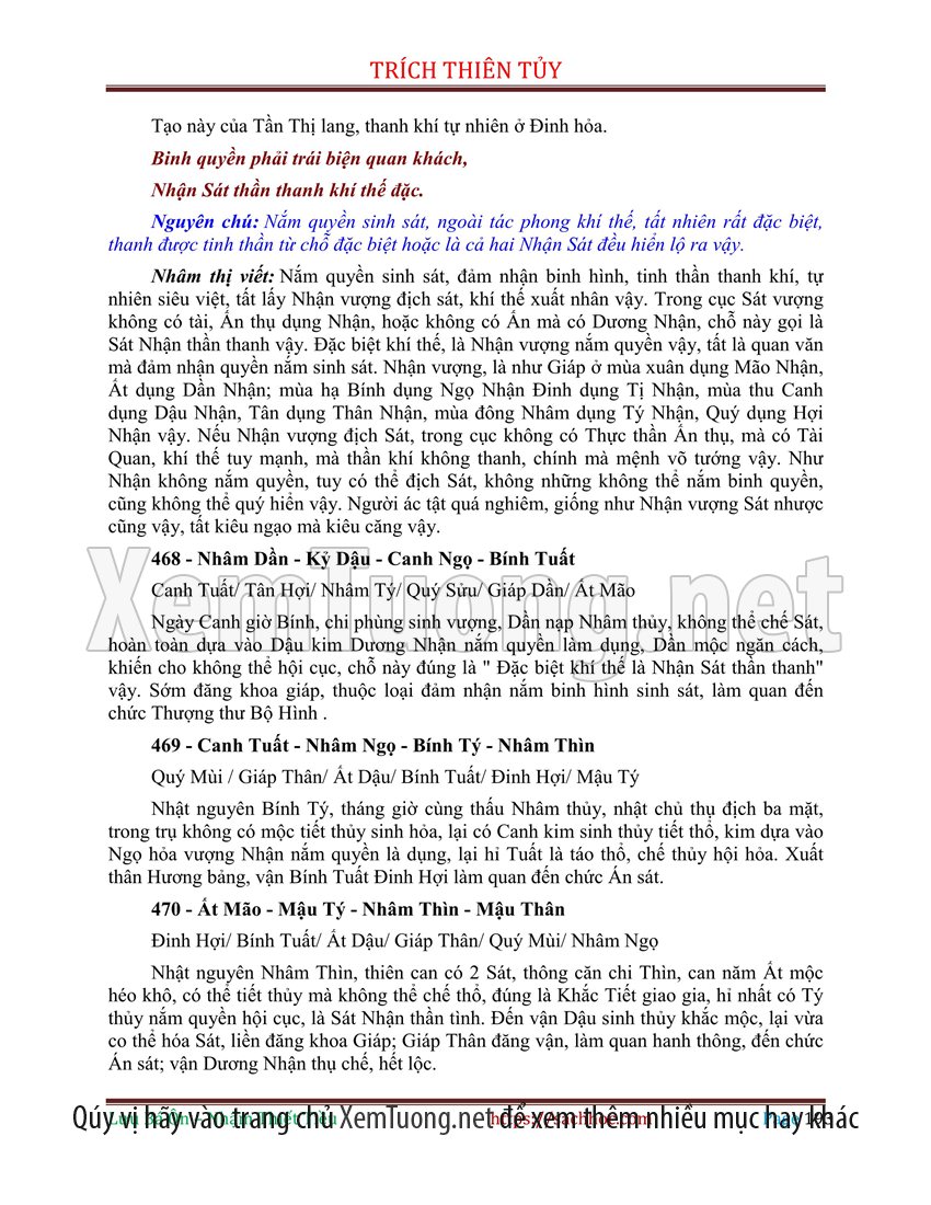 Sách "Trích thiên tủy bình chú" là cuốn sách kinh điển về lý luận của Tử Bình Tứ Trụ. Ở Trung Quốc những người học Tứ Trụ đều coi đây là cuốn sách nền tảng làm kim chỉ nam cho việc học tập và luận giải. Tương truyền do Lưu Bá Ôn thời nhà Minh biên soạn, sau được Nhậm Thiết Tiều thời nhà Thanh bình chú.