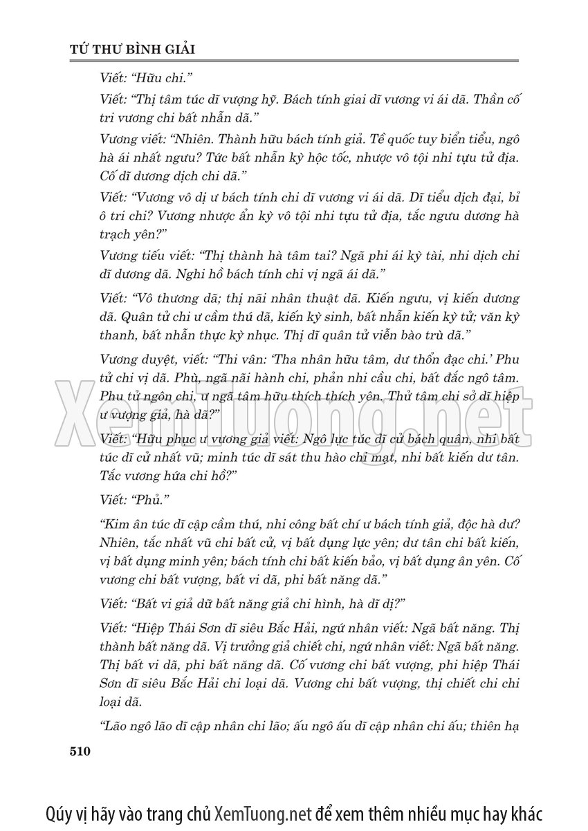 Sách "Tứ thư bình giải" của tác giả Lý Minh Tuấn nhằm cho chúng ta thấy được toàn bộ quá trình phát triển và trải qua thăng trầm của bộ tứ thư. Bộ sách này của Nho giáo ra đời cách nay khoảng hơn 2.000 năm, đã trải qua bao sóng gió theo những giai đoạn thăng trầm của lịch sử Trung Hoa. Lần thì bị Tần Thủy Hoàng đốt, lần thì bị tiêu tan trong các cuộc nội chiến triền miên của Trung Hoa. Do vậy khó tránh được nạn "tam sao thất bản". Đến đời nhà Tống, bộ sách này mới được các danh Nho tu chỉnh.