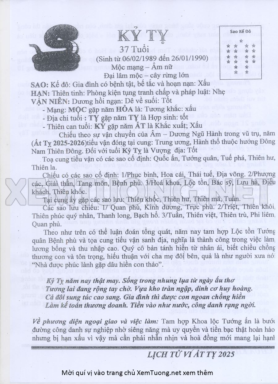 Tử Vi Năm Ất Tỵ 2025 mạng nữ KỶ TỴ