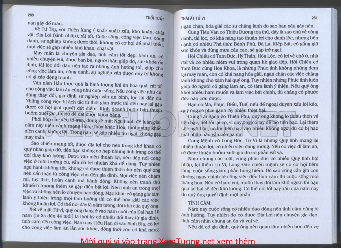 (Lưu ý: Thái Ất Tử Vi được chúng tôi scan từ sách, do đó mỗi tuổi sẽ có nhiều trang, quý vị xem xong hãy nhấn vào trang tiếp theo để xem hết phần tuổi muốn xem. Nếu quý vị xem bằng điện thoại thì hãy kéo qua lại để xem phần bị khuất.)