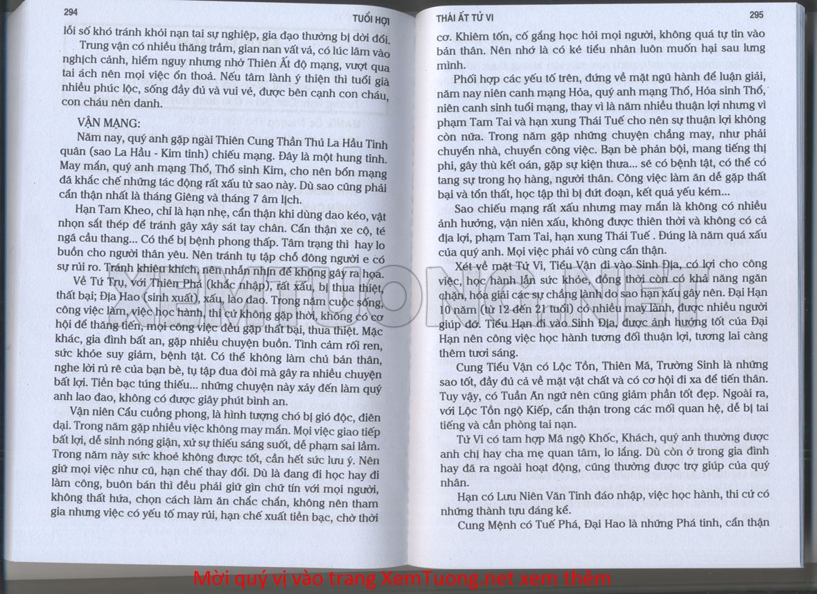 (Lưu ý: Thái Ất Tử Vi được chúng tôi scan từ sách, do đó mỗi tuổi sẽ có nhiều trang, quý vị xem xong hãy nhấn vào trang tiếp theo để xem hết phần tuổi muốn xem. Nếu quý vị xem bằng điện thoại thì hãy kéo qua lại để xem phần bị khuất.)