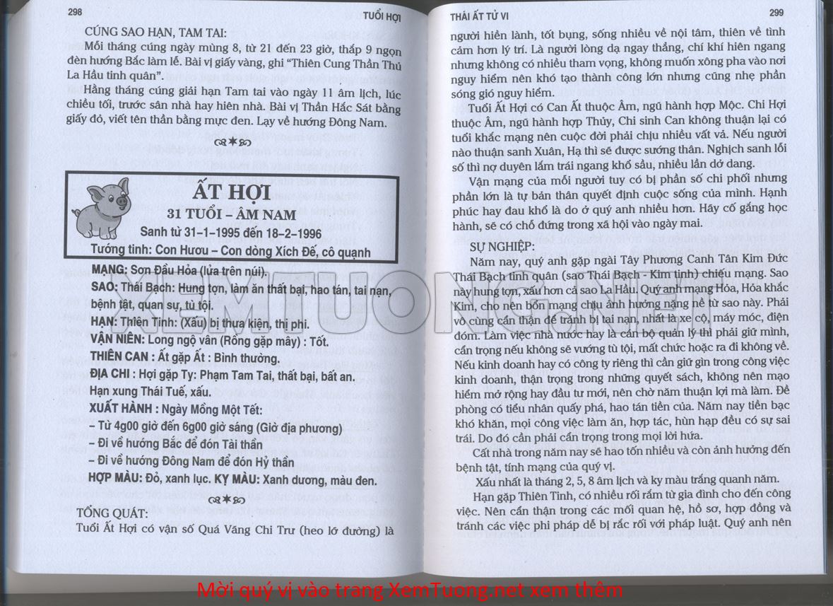 (Lưu ý: Thái Ất Tử Vi được chúng tôi scan từ sách, do đó mỗi tuổi sẽ có nhiều trang, quý vị xem xong hãy nhấn vào trang tiếp theo để xem hết phần tuổi muốn xem. Nếu quý vị xem bằng điện thoại thì hãy kéo qua lại để xem phần bị khuất.)