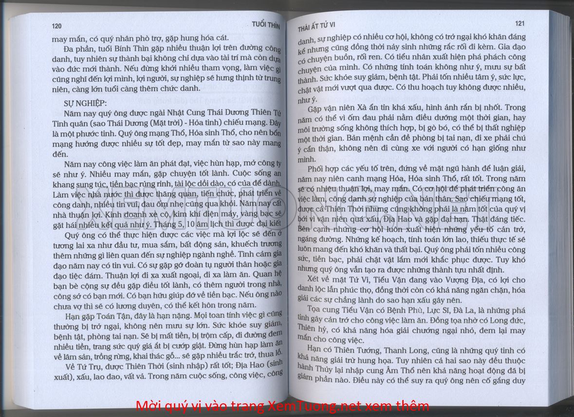 (Lưu ý: Thái Ất Tử Vi được chúng tôi scan từ sách, do đó mỗi tuổi sẽ có nhiều trang, quý vị xem xong hãy nhấn vào trang tiếp theo để xem hết phần tuổi muốn xem. Nếu quý vị xem bằng điện thoại thì hãy kéo qua lại để xem phần bị khuất.)