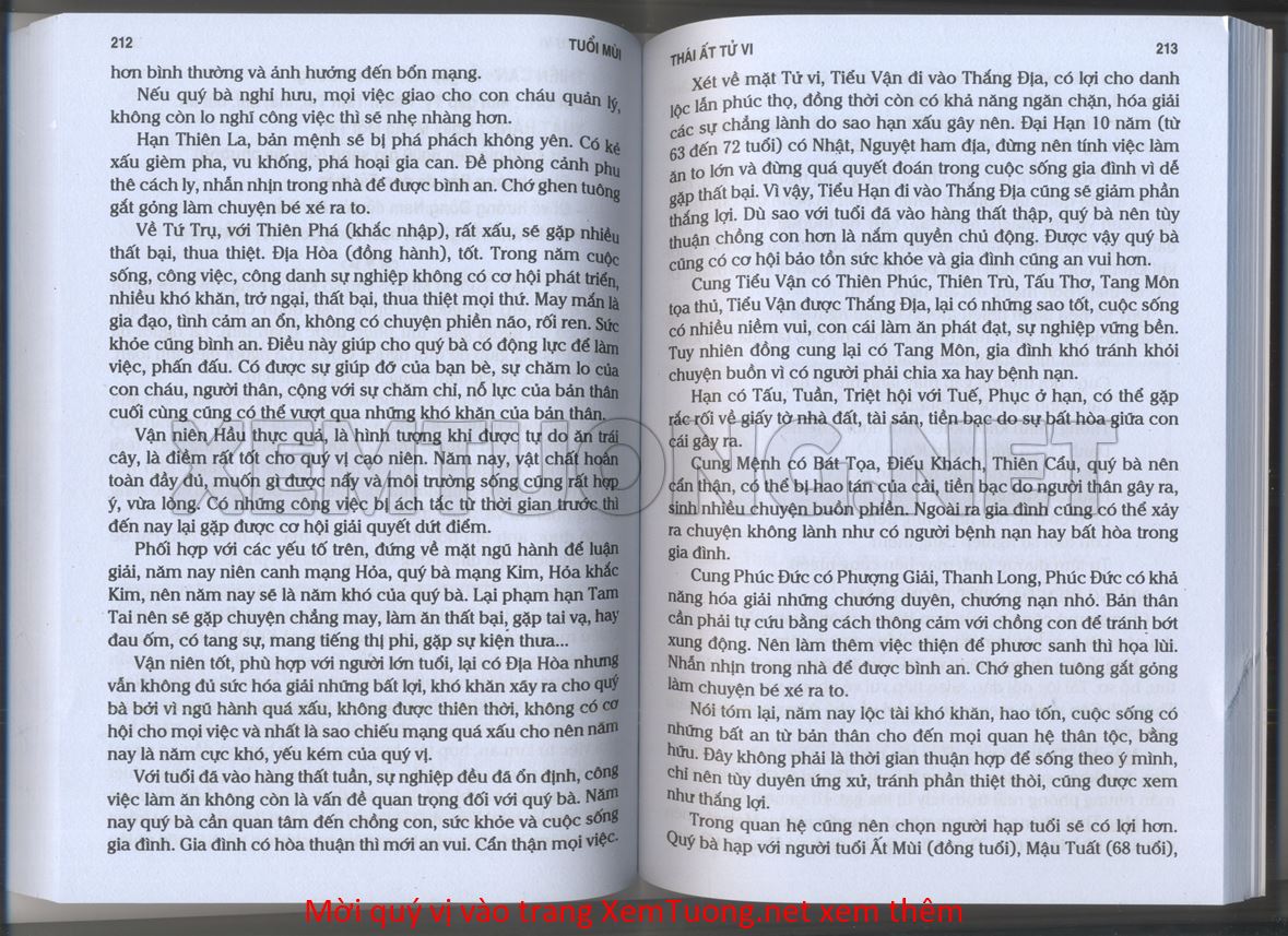 (Lưu ý: Thái Ất Tử Vi được chúng tôi scan từ sách, do đó mỗi tuổi sẽ có nhiều trang, quý vị xem xong hãy nhấn vào trang tiếp theo để xem hết phần tuổi muốn xem. Nếu quý vị xem bằng điện thoại thì hãy kéo qua lại để xem phần bị khuất.)