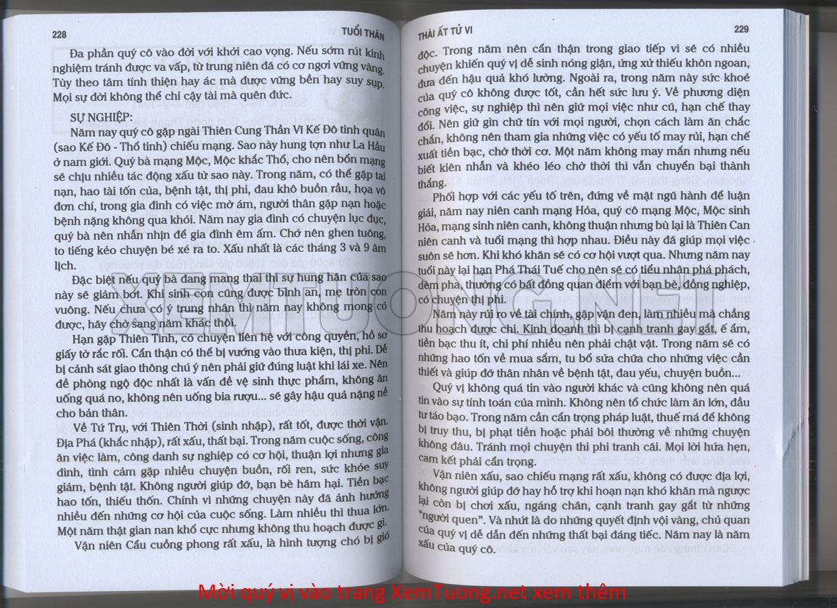(Lưu ý: Thái Ất Tử Vi được chúng tôi scan từ sách, do đó mỗi tuổi sẽ có nhiều trang, quý vị xem xong hãy nhấn vào trang tiếp theo để xem hết phần tuổi muốn xem. Nếu quý vị xem bằng điện thoại thì hãy kéo qua lại để xem phần bị khuất.)