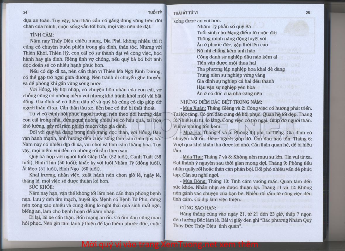 (Lưu ý: Thái Ất Tử Vi được chúng tôi scan từ sách, do đó mỗi tuổi sẽ có nhiều trang, quý vị xem xong hãy nhấn vào trang tiếp theo để xem hết phần tuổi muốn xem. Nếu quý vị xem bằng điện thoại thì hãy kéo qua lại để xem phần bị khuất.)