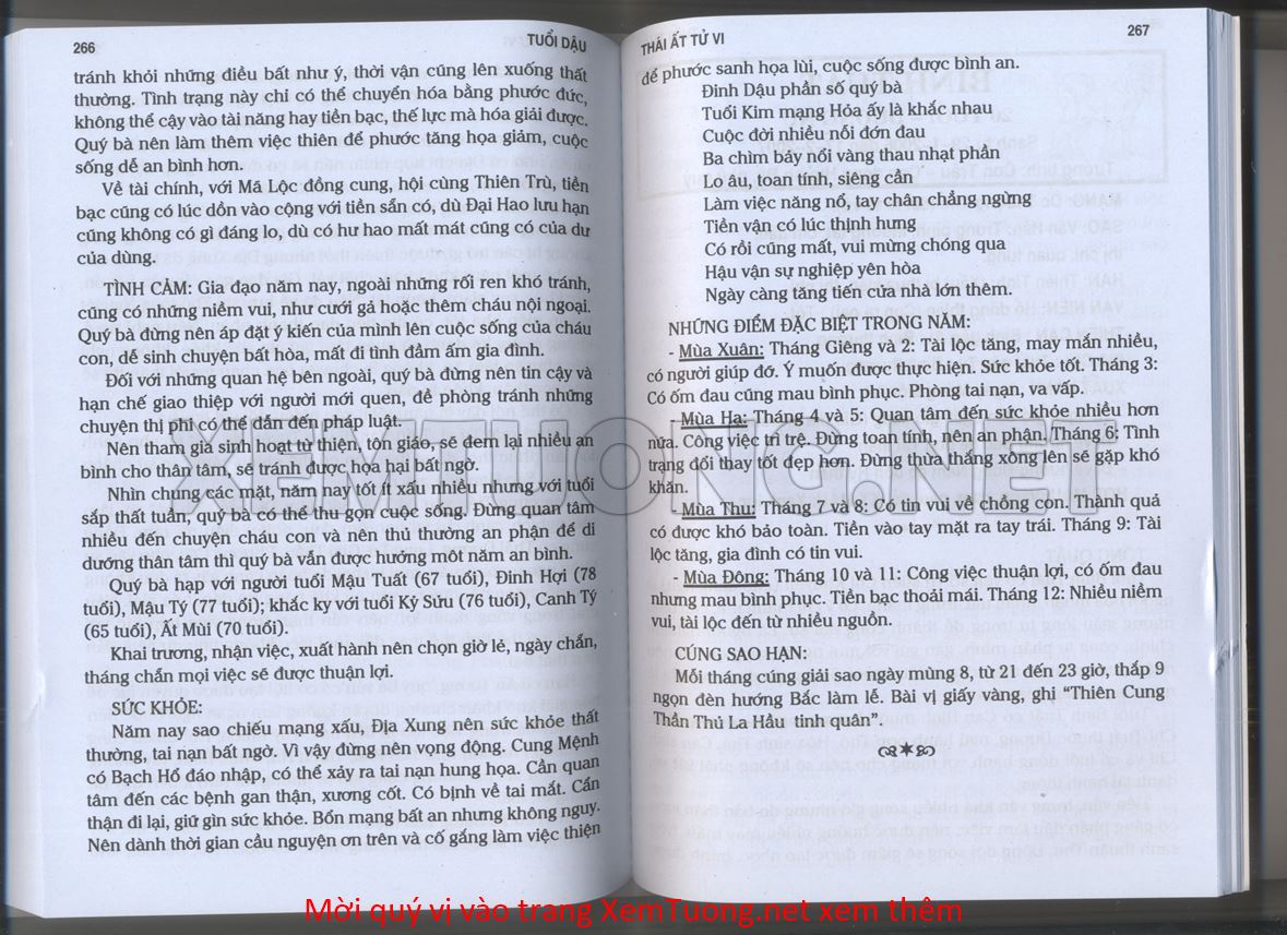(Lưu ý: Thái Ất Tử Vi được chúng tôi scan từ sách, do đó mỗi tuổi sẽ có nhiều trang, quý vị xem xong hãy nhấn vào trang tiếp theo để xem hết phần tuổi muốn xem. Nếu quý vị xem bằng điện thoại thì hãy kéo qua lại để xem phần bị khuất.)