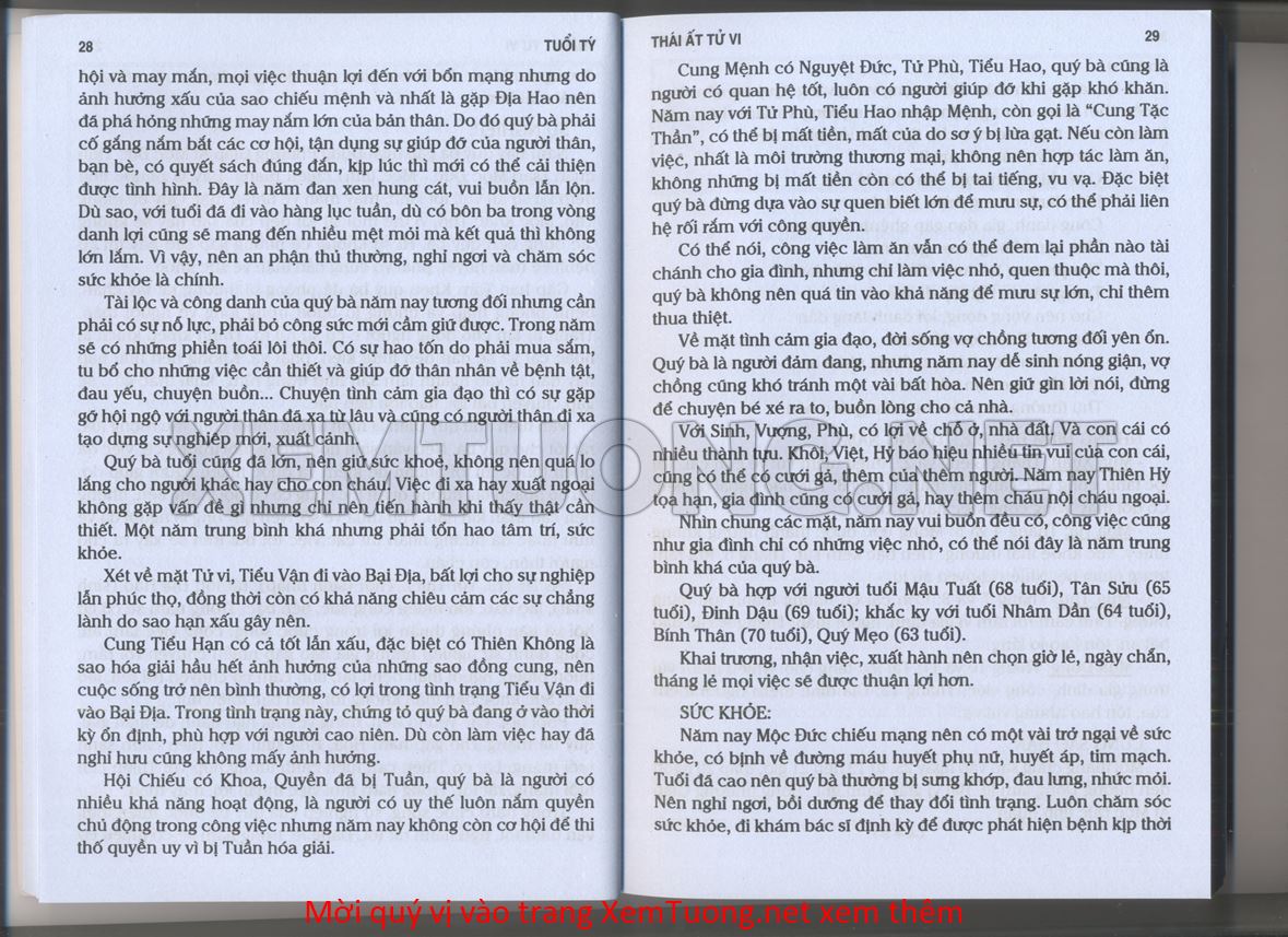 (Lưu ý: Thái Ất Tử Vi được chúng tôi scan từ sách, do đó mỗi tuổi sẽ có nhiều trang, quý vị xem xong hãy nhấn vào trang tiếp theo để xem hết phần tuổi muốn xem. Nếu quý vị xem bằng điện thoại thì hãy kéo qua lại để xem phần bị khuất.)