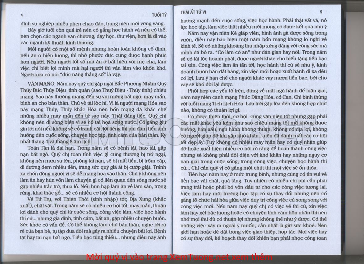 (Lưu ý: Thái Ất Tử Vi được chúng tôi scan từ sách, do đó mỗi tuổi sẽ có nhiều trang, quý vị xem xong hãy nhấn vào trang tiếp theo để xem hết phần tuổi muốn xem. Nếu quý vị xem bằng điện thoại thì hãy kéo qua lại để xem phần bị khuất.)