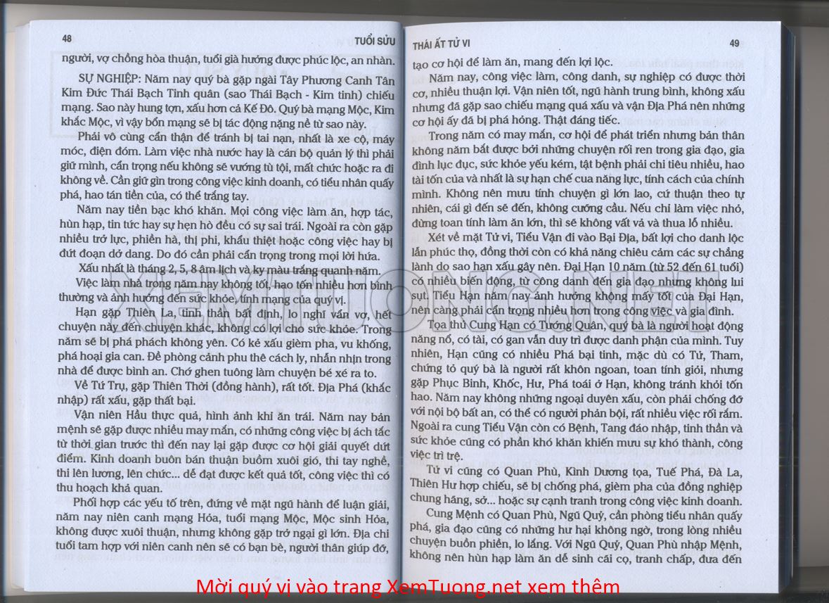 (Lưu ý: Thái Ất Tử Vi được chúng tôi scan từ sách, do đó mỗi tuổi sẽ có nhiều trang, quý vị xem xong hãy nhấn vào trang tiếp theo để xem hết phần tuổi muốn xem. Nếu quý vị xem bằng điện thoại thì hãy kéo qua lại để xem phần bị khuất.)