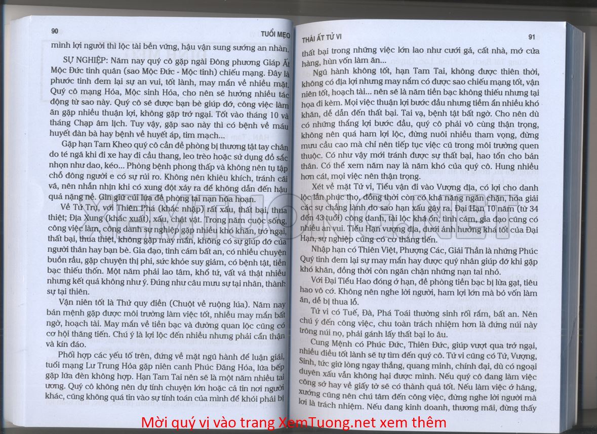 (Lưu ý: Thái Ất Tử Vi được chúng tôi scan từ sách, do đó mỗi tuổi sẽ có nhiều trang, quý vị xem xong hãy nhấn vào trang tiếp theo để xem hết phần tuổi muốn xem. Nếu quý vị xem bằng điện thoại thì hãy kéo qua lại để xem phần bị khuất.)