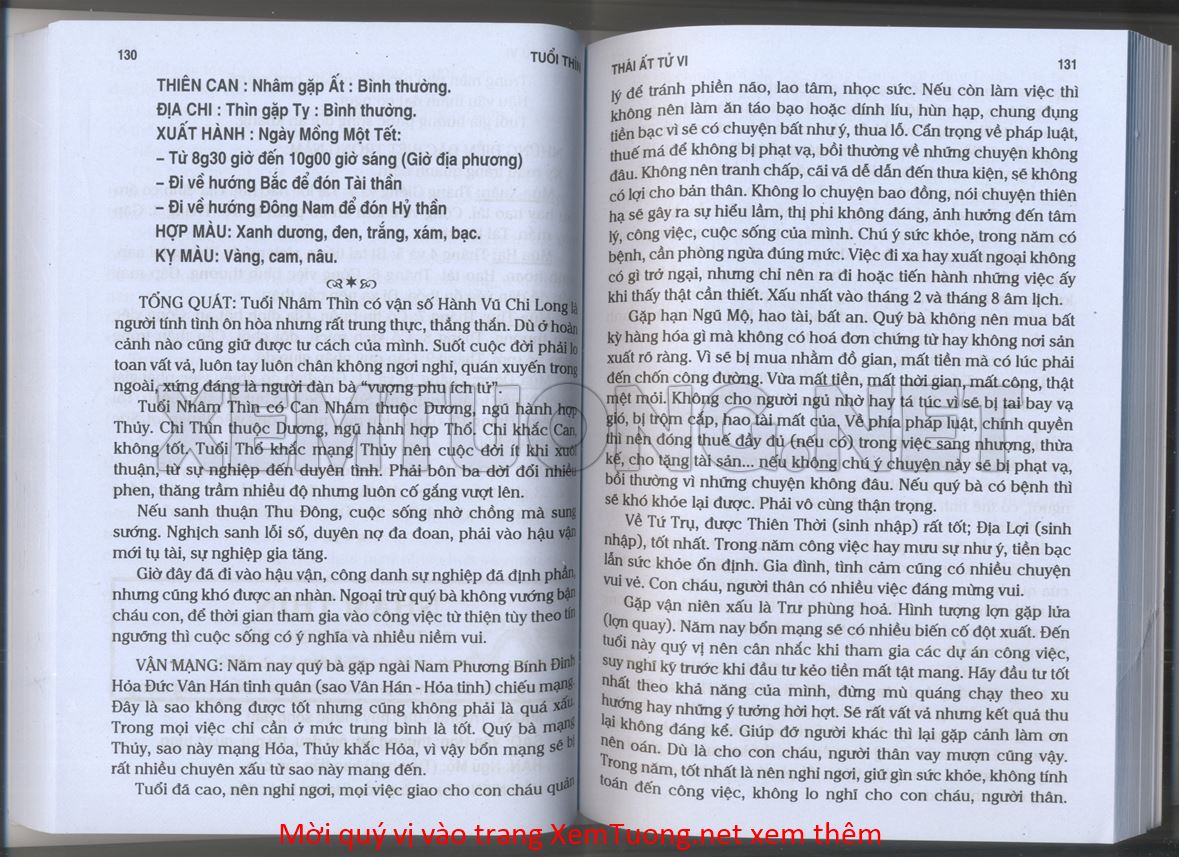 (Lưu ý: Thái Ất Tử Vi được chúng tôi scan từ sách, do đó mỗi tuổi sẽ có nhiều trang, quý vị xem xong hãy nhấn vào trang tiếp theo để xem hết phần tuổi muốn xem. Nếu quý vị xem bằng điện thoại thì hãy kéo qua lại để xem phần bị khuất.)