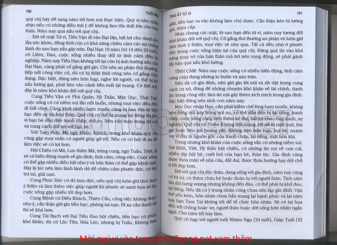(Lưu ý: Thái Ất Tử Vi được chúng tôi scan từ sách, do đó mỗi tuổi sẽ có nhiều trang, quý vị xem xong hãy nhấn vào trang tiếp theo để xem hết phần tuổi muốn xem. Nếu quý vị xem bằng điện thoại thì hãy kéo qua lại để xem phần bị khuất.)