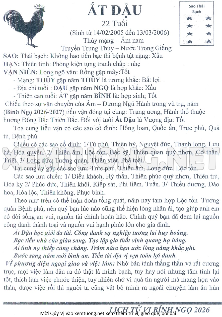 Tử Vi Năm Bính Ngọ 2026 mạng nam ẤT DẬU