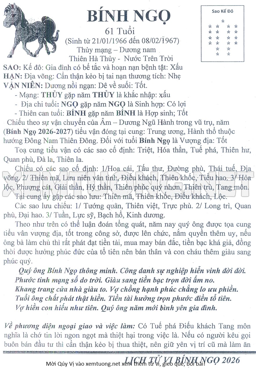 Tử Vi Năm Bính Ngọ 2026 mạng nam BÍNH NGỌ