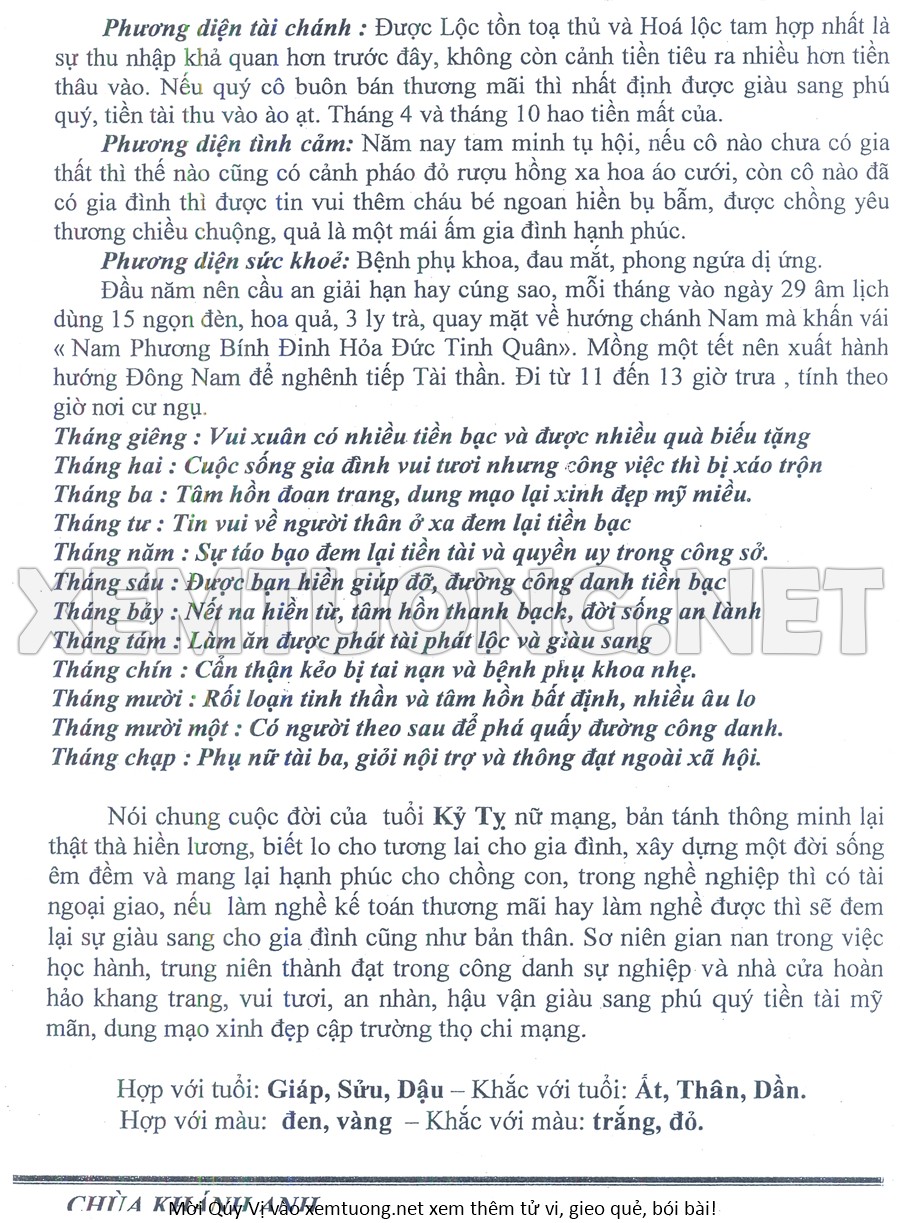 Tử Vi Năm Bính Ngọ 2026 mạng nữ KỶ TỴ