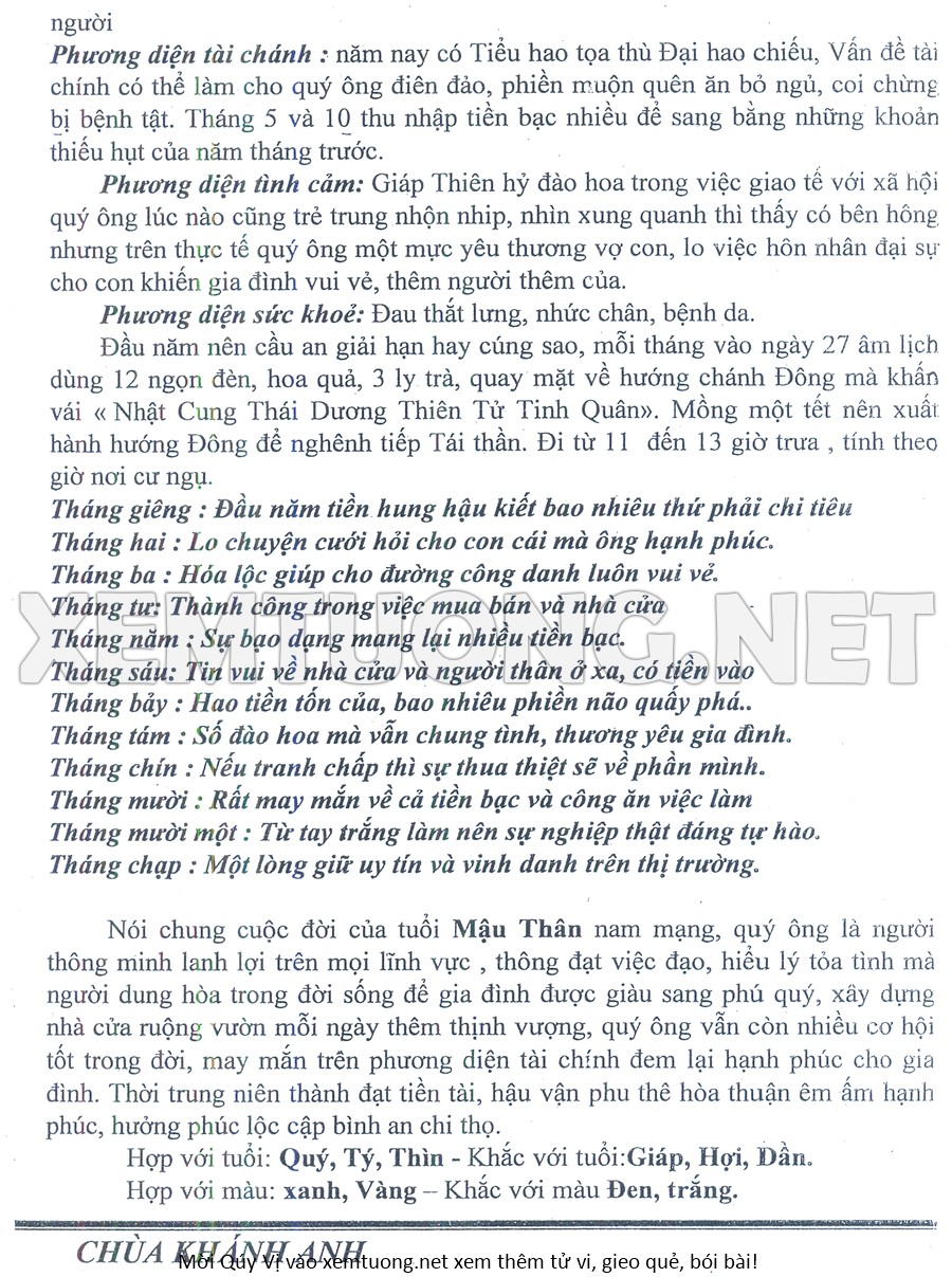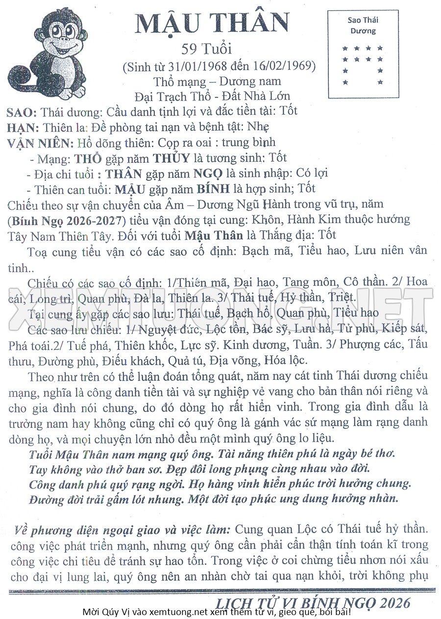 Tử Vi Năm Bính Ngọ 2026 mạng nam MẬU THÂN
