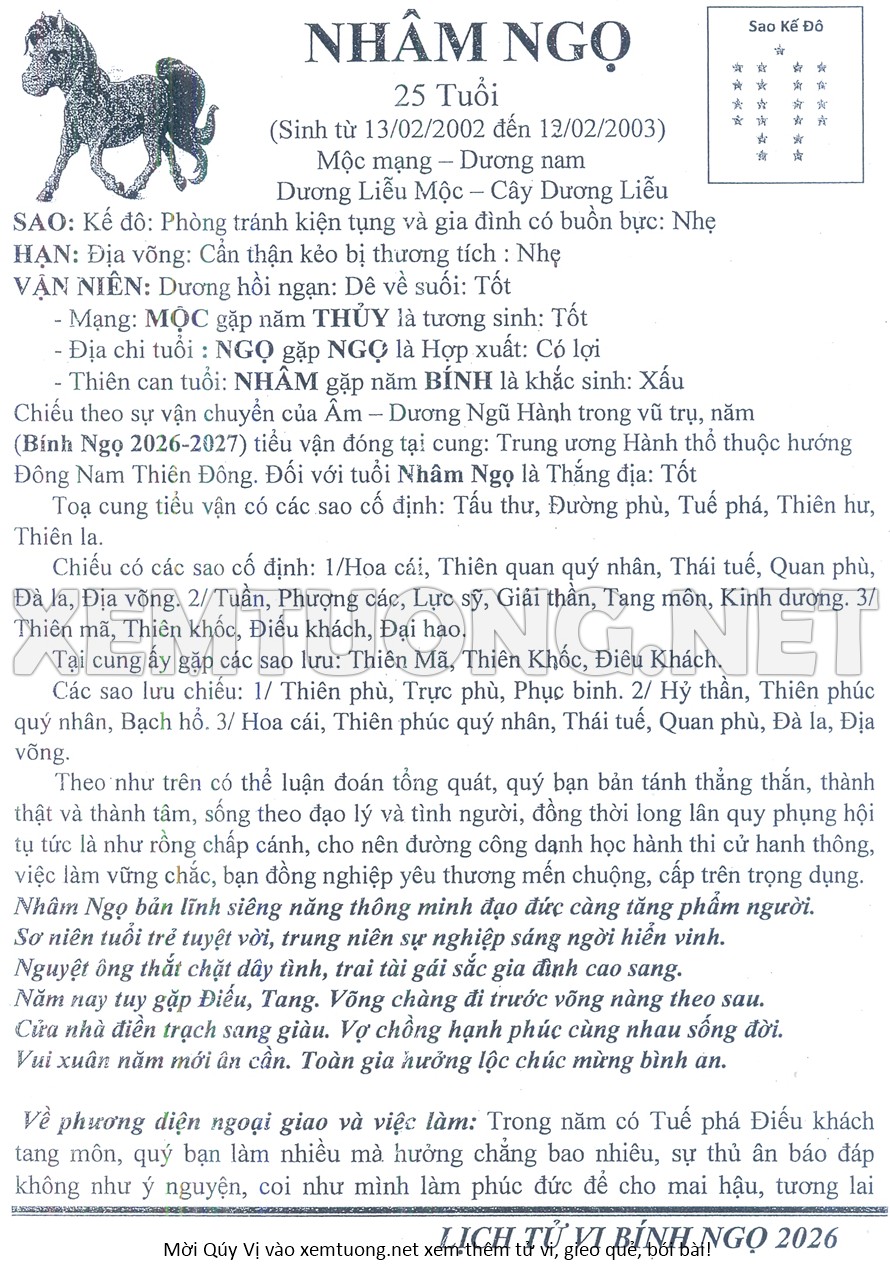 Tử Vi Năm Bính Ngọ 2026 mạng nam NHÂM NGỌ