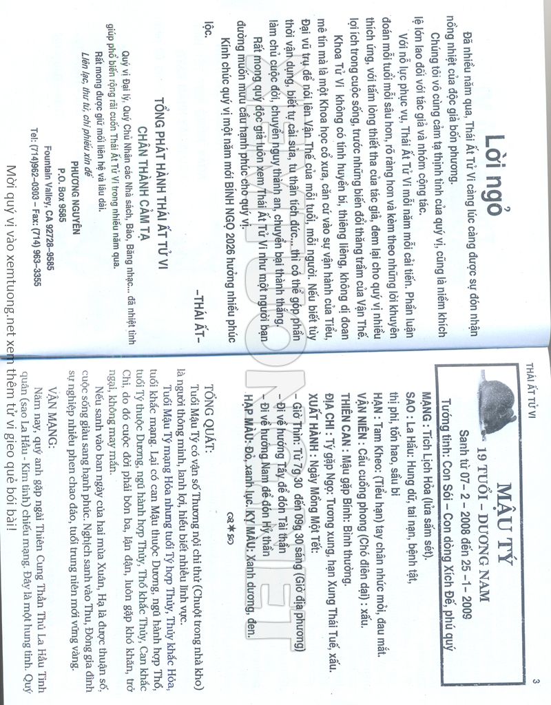 (Lưu ý: Thái Ất Tử Vi được chúng tôi scan từ sách, do đó mỗi tuổi sẽ có nhiều trang, quý vị xem xong hãy nhấn vào trang tiếp theo để xem hết phần tuổi muốn xem. Nếu quý vị xem bằng điện thoại thì hãy kéo qua lại để xem phần bị khuất.)