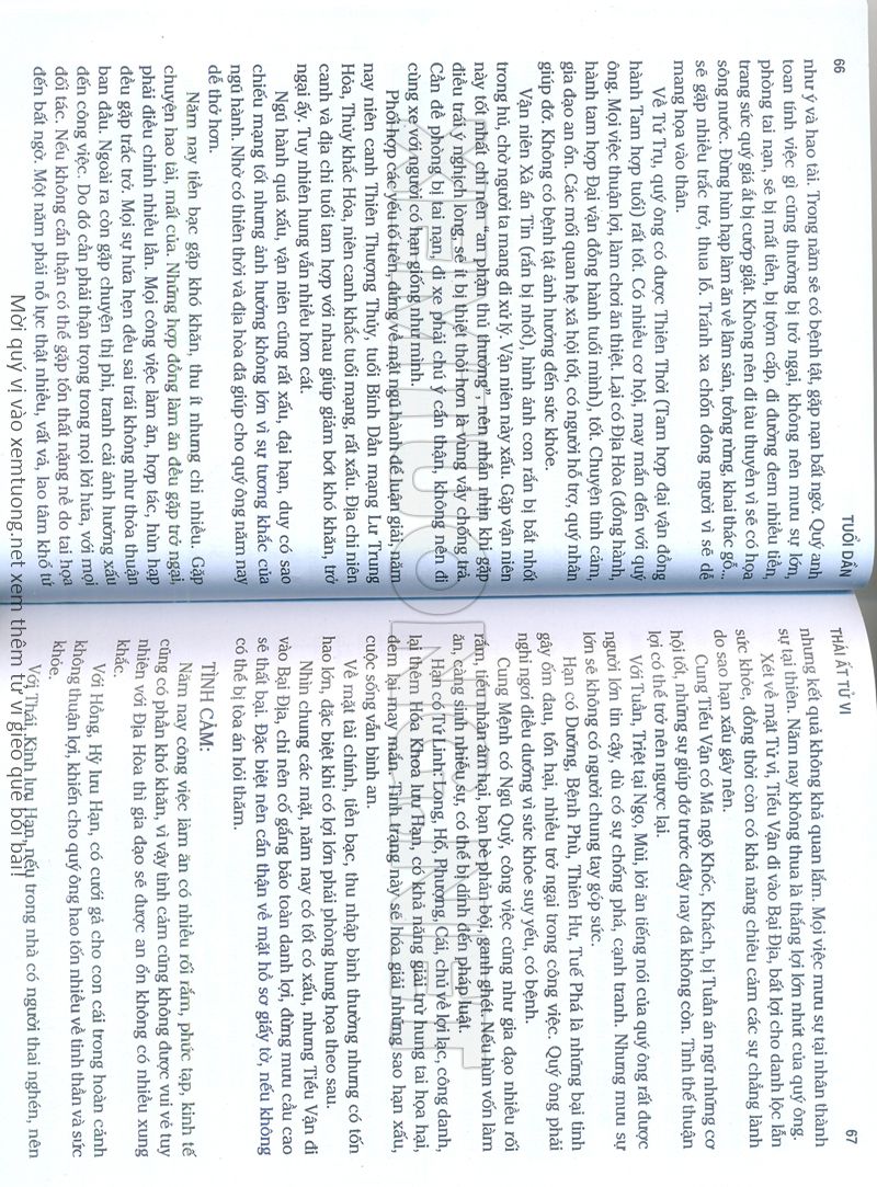 (Lưu ý: Thái Ất Tử Vi được chúng tôi scan từ sách, do đó mỗi tuổi sẽ có nhiều trang, quý vị xem xong hãy nhấn vào trang tiếp theo để xem hết phần tuổi muốn xem. Nếu quý vị xem bằng điện thoại thì hãy kéo qua lại để xem phần bị khuất.)