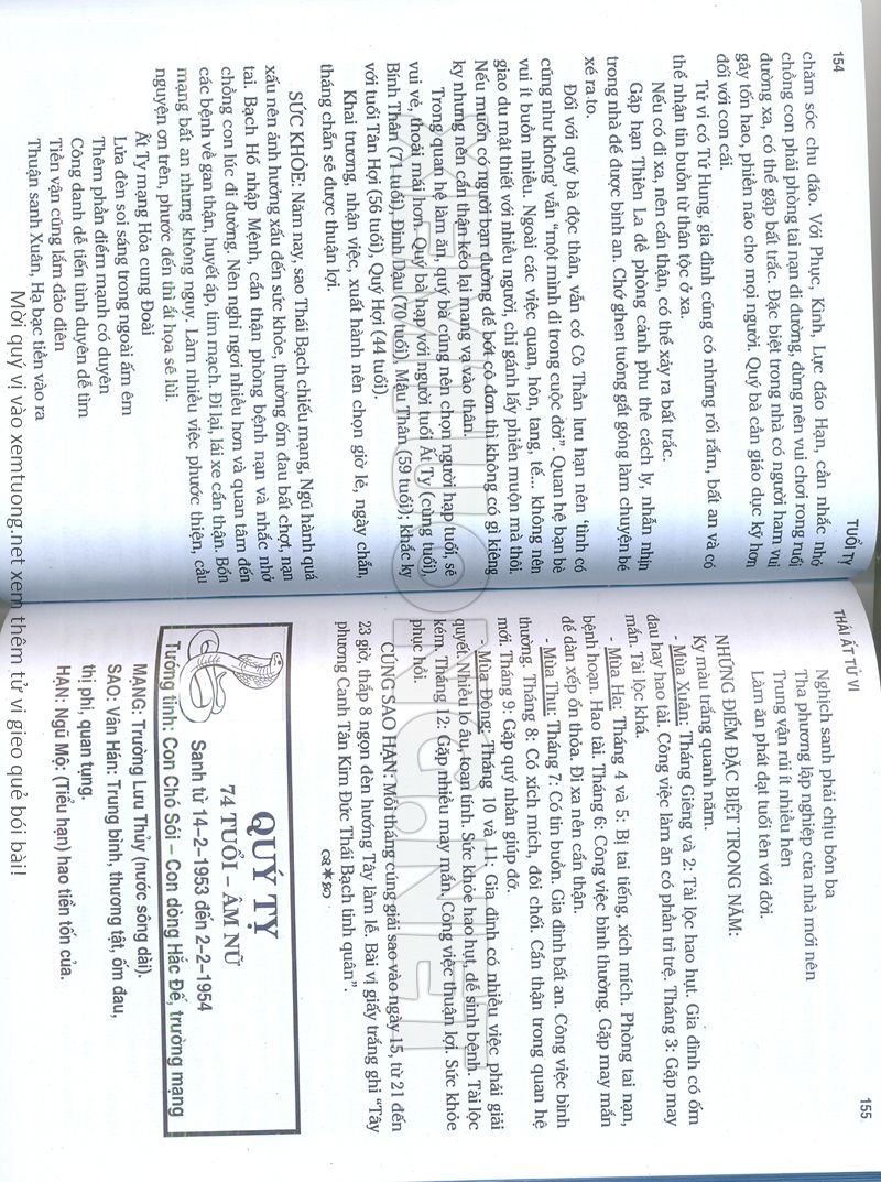 (Lưu ý: Thái Ất Tử Vi được chúng tôi scan từ sách, do đó mỗi tuổi sẽ có nhiều trang, quý vị xem xong hãy nhấn vào trang tiếp theo để xem hết phần tuổi muốn xem. Nếu quý vị xem bằng điện thoại thì hãy kéo qua lại để xem phần bị khuất.)